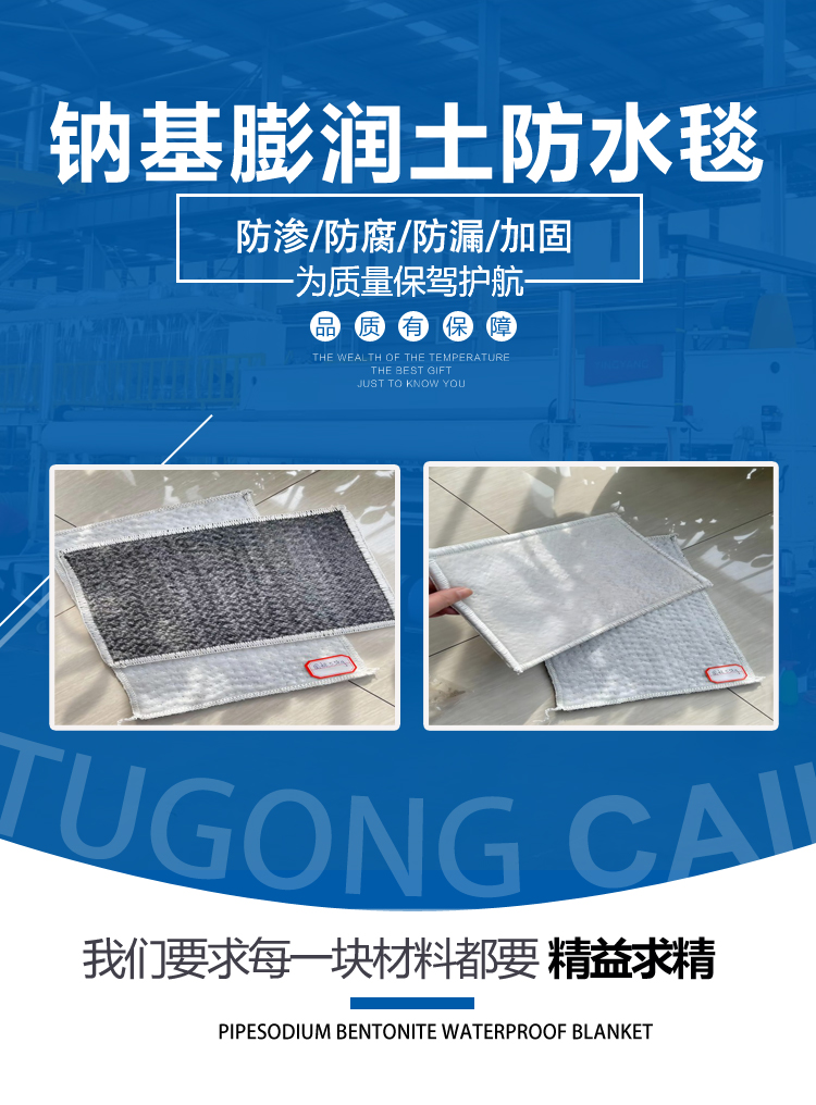 鈉基膨潤土復(fù)合防水毯(GCL) 是一種新型土工合成材料。它由經(jīng)過級配的天然鈉基膨潤土顆粒和相應(yīng)的外加劑混合為原材料,經(jīng)針刺工藝及設(shè)備,把膨潤土顆粒固定在土工布和塑料編織布之間而制成的毯狀防水卷材。膨潤土防水毯既具有土工材料的全部特性,又具有優(yōu)異的防水(滲)性能。