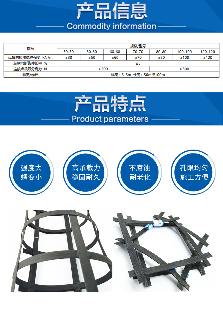 1、強度大、蠕變小、適應各類環境土壤,完全可以滿足高等級公路中的高大擋墻使用。